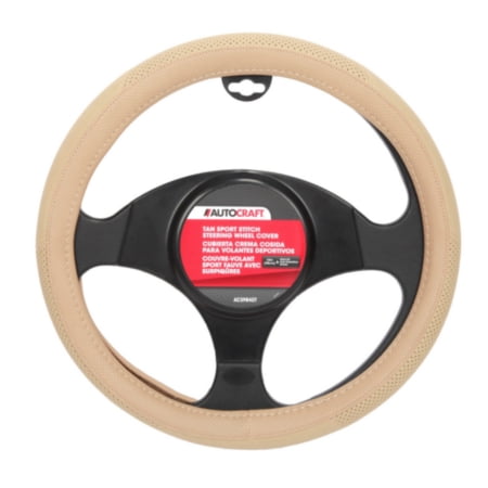 Autocraft Steering Wheel Cover Tan Faux Leather Sporty Fits 15 Smaller Neat Perforated Walmart Com